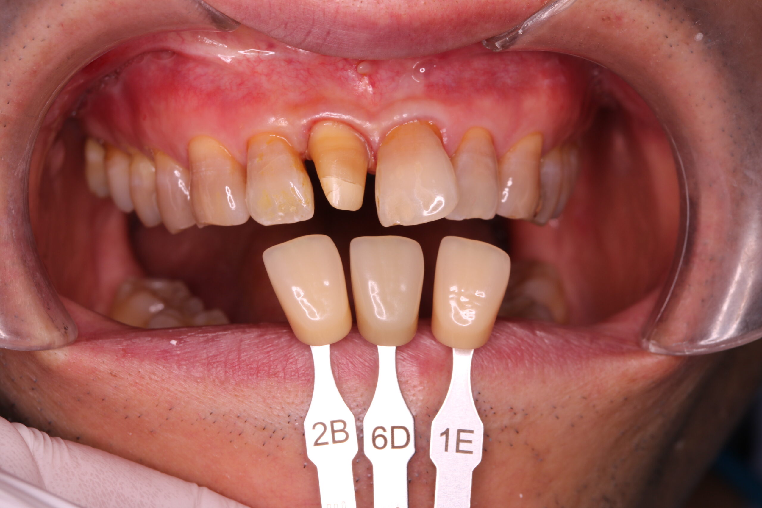 技工士さんに歯の色を伝えるための写真です